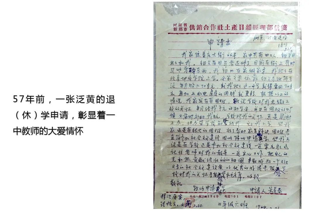 一张泛黄的退(休)学申请书和一个木制的小推车,更是引发了大家的深入思考,书、车背后的故事和所展现的一中教师的大爱情怀和敬业精神让大家肃然起敬。